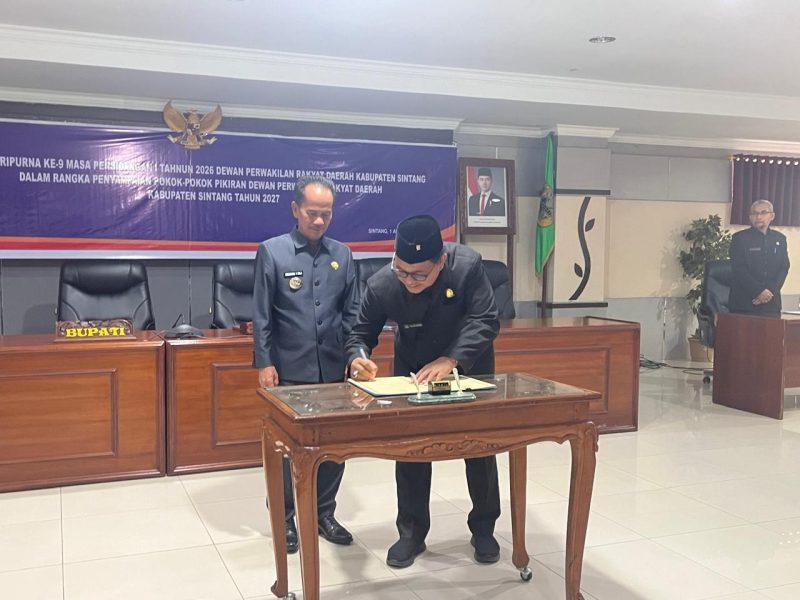 SINTANG – Dewan Perwakilan Rakyat Daerah (DPRD) Kabupaten Sintang bersama Pemerintah Kabupaten Sintang resmi menandatangani berita acara dan menyerahkan pokok-pokok pikiran (pokir) DPRD untuk Tahun Anggaran 2027 dalam Rapat Paripurna yang digelar pada Rabu, 1 April 2026.