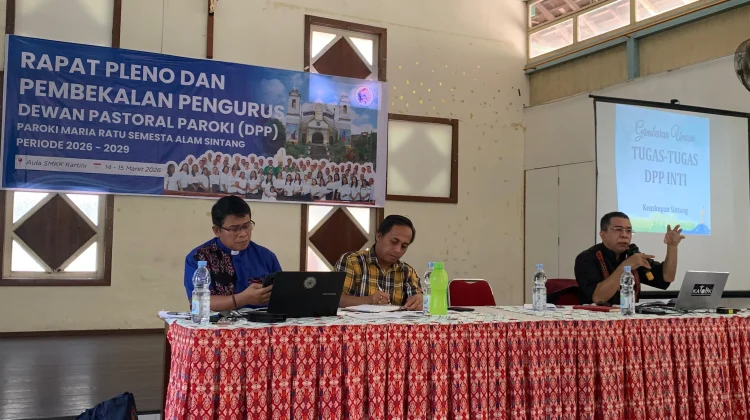 SINTANG – Pengurus Dewan Pastoral Paroki (DPP) Maria Ratu Semesta Alam periode 2026–2029 mengikuti rapat pleno dan pembekalan yang dilaksanakan selama dua hari di Aula SMKK Kartini Sintang. Kegiatan ini menjadi langkah awal dalam menyusun arah kerja pelayanan gereja sepanjang tahun 2026.